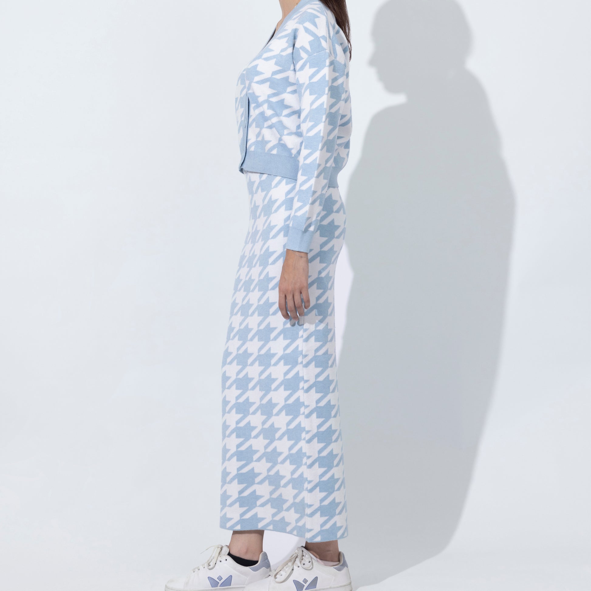 Azure Breeze Skirt & Sweater Set, a graceful blend of cozy comfort and refined style. Inspired by the calming hues of the sky, this set features a soft azure-toned sweater paired with a matching skirt, Whether you're heading out for brunch, a weekend getaway, or a casual office day, this set brings fresh, breezy charm to your wardrobe — all while keeping you warm and effortlessly stylish.