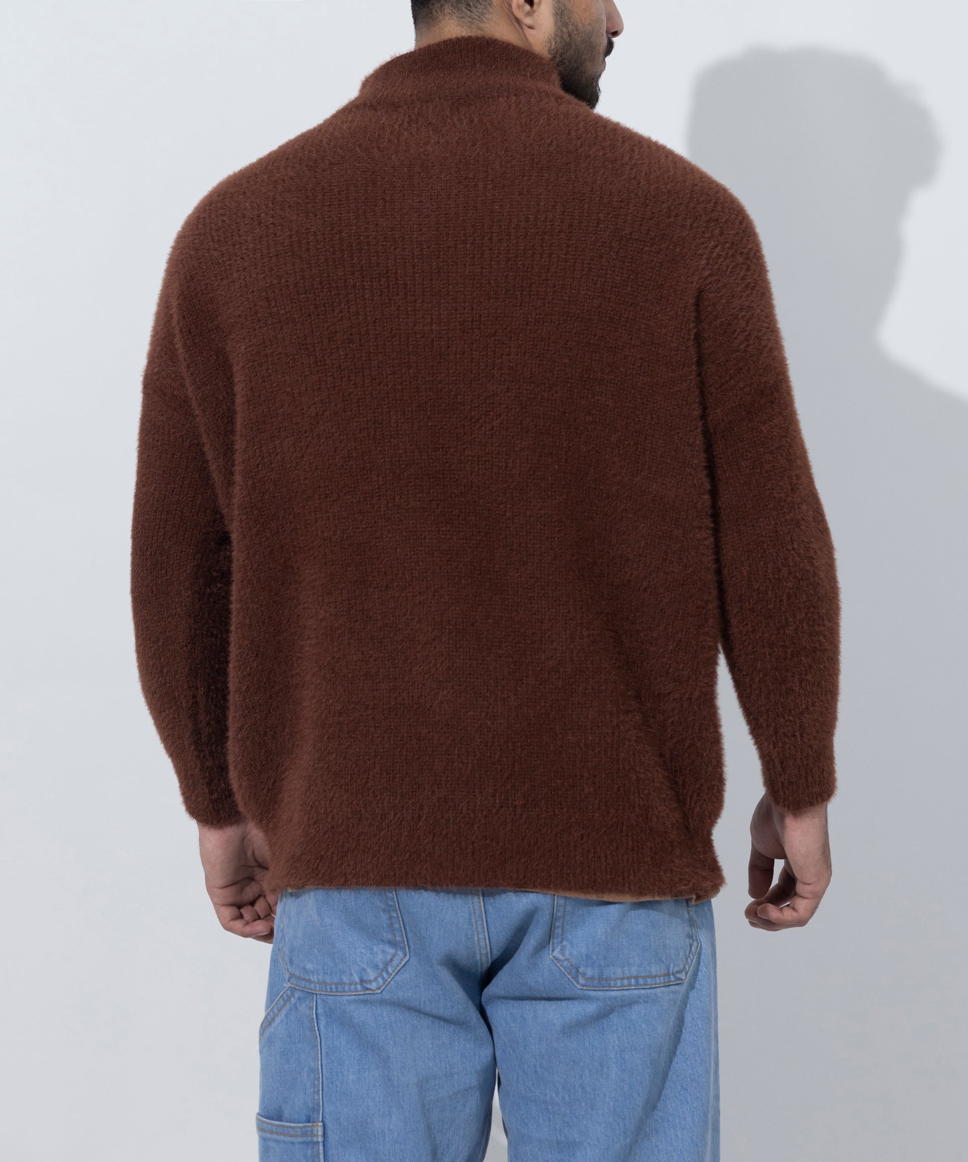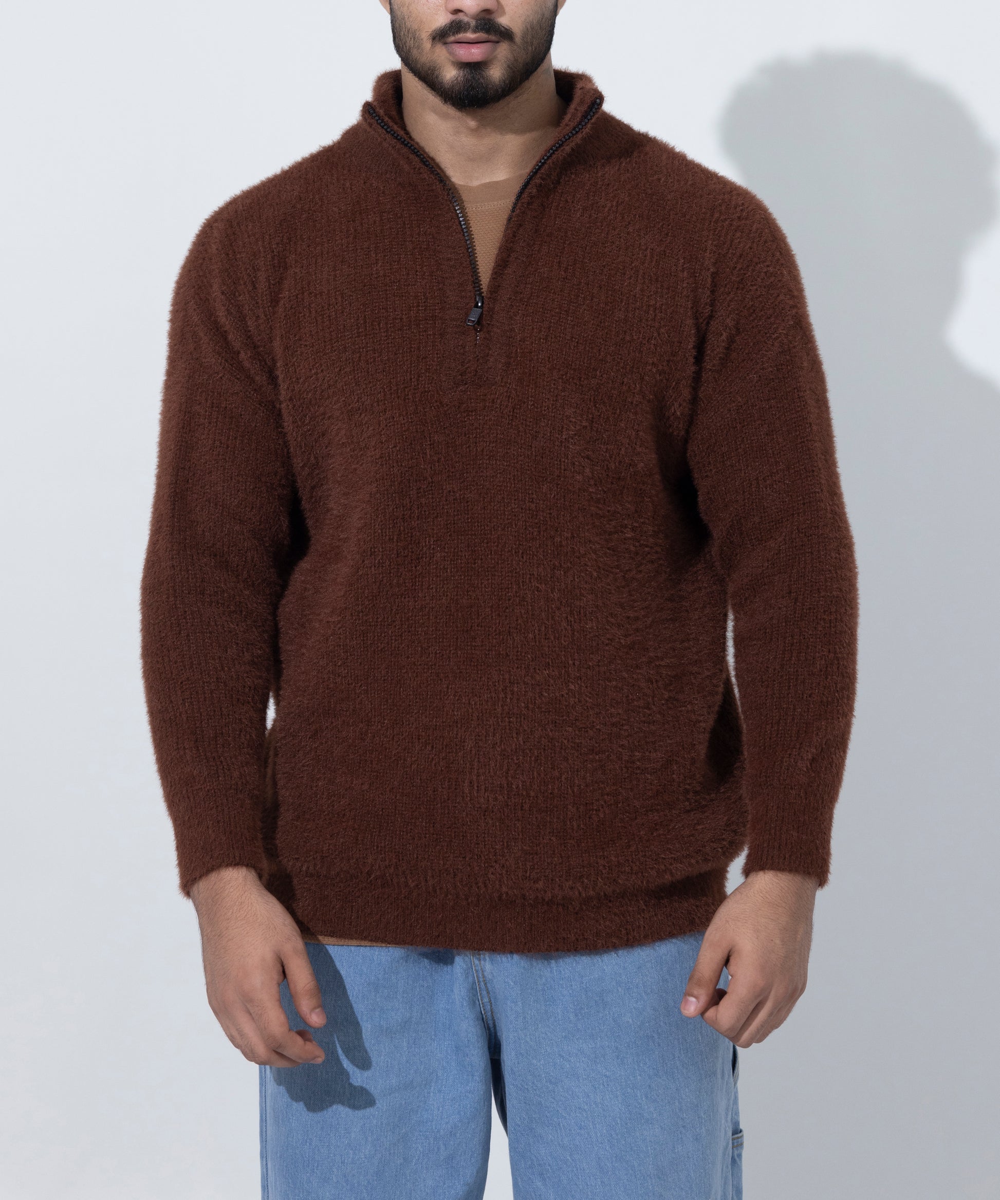 “Stay warm in style with this plush mid‑zip sweater for men. Crafted from a soft‑touch, it features a stand with a half‑zip placket so you can adjust the neckline for comfort.